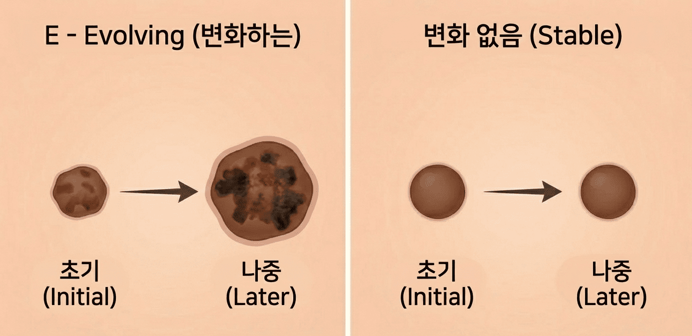 일반 색소 병변과의 구별: ABCDE 진단 기준