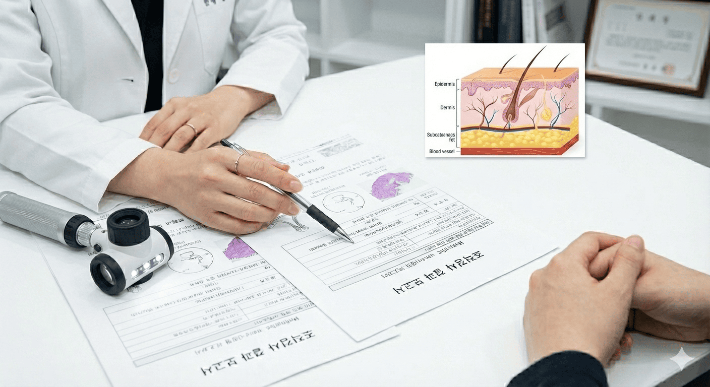 - 절차: 외래에서 국소 마취 후 안전하게 시행되며, 펀치(Punch) 생검 또는 면도(Shave) 생검 등 병변 형태에 맞는 방식으로 조직을 채취합니다. 일상생활에 거의 지장이 없습니다.