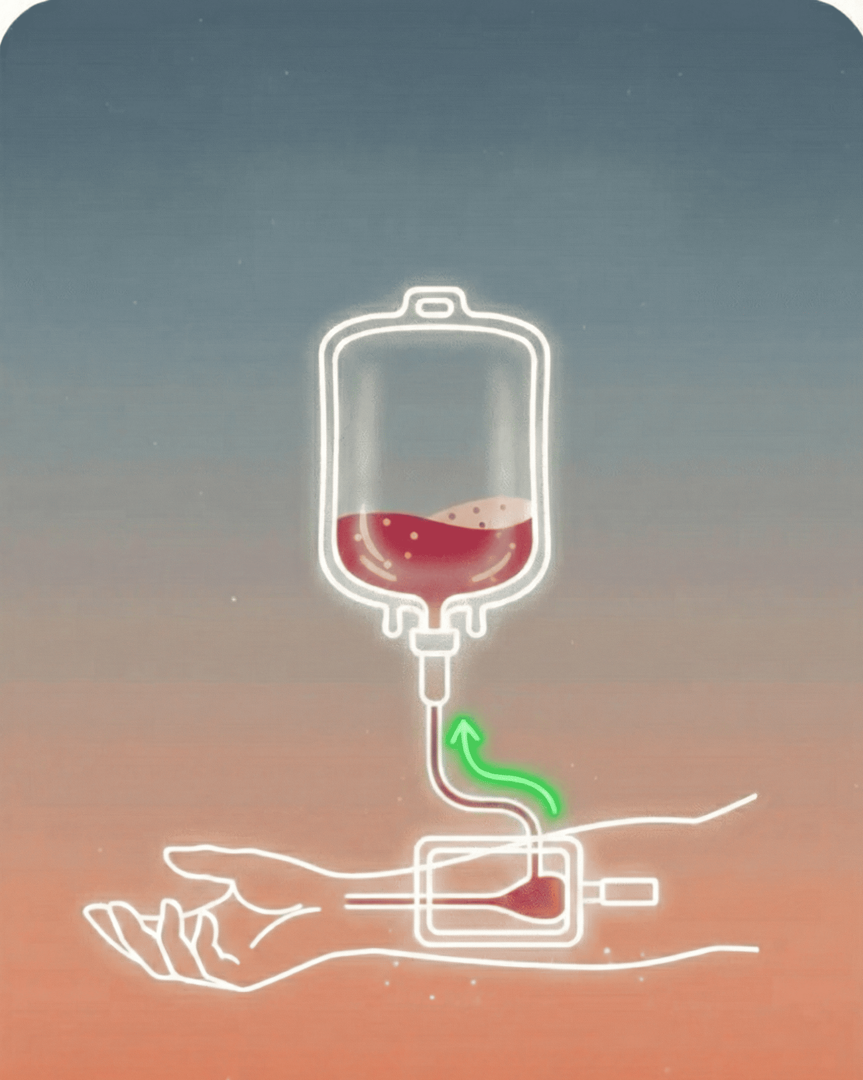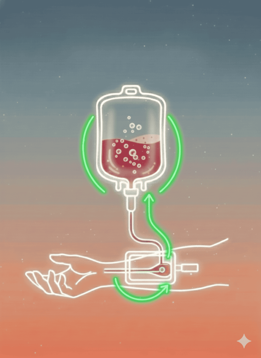 3. 2차 광선 조사 & 혈액 재주입 — 활성 혈액의 귀환