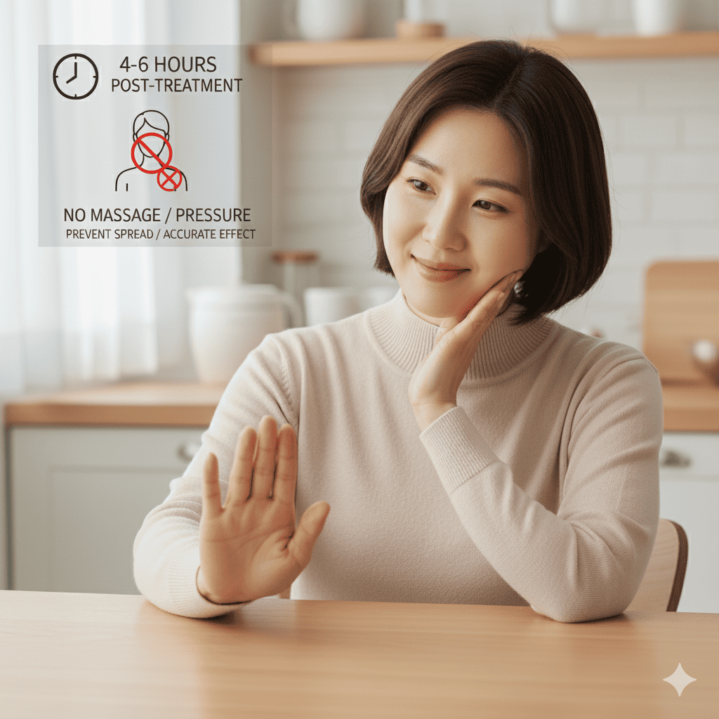 시술 후 4~6시간 동안은 시술 부위, 특히 턱이나 승모근 부위를