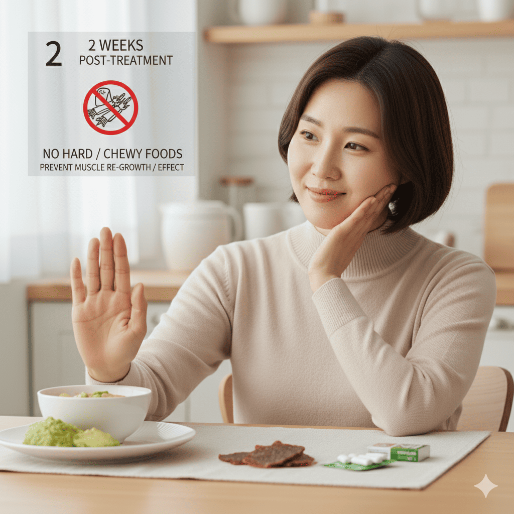 턱 보톡스 시술 후 최소 2주간은 딱딱하고 질긴 음식