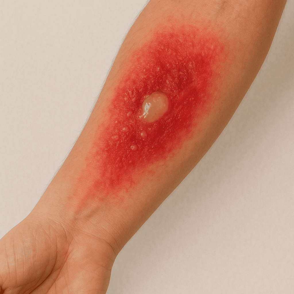 • 터뜨리는 행위는 물집 아래의 약해진 새 피부를 세균에 노출시켜 2차 감염과 흉터 악화 위험을 크게 높입니다.